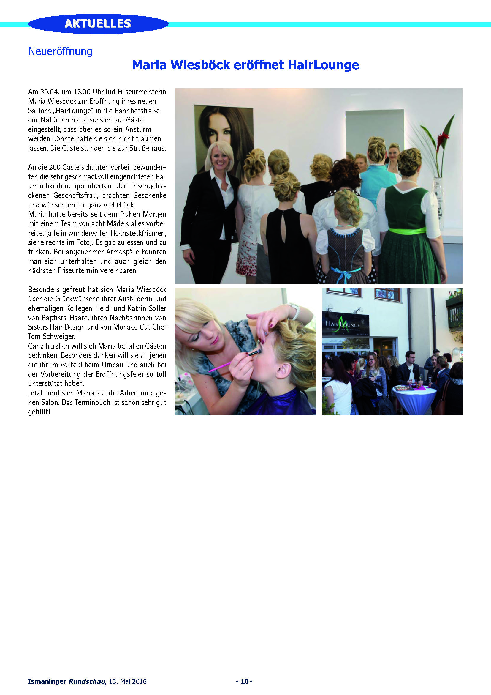 Bericht Ismaninger Rundschau vom 13.05.2016